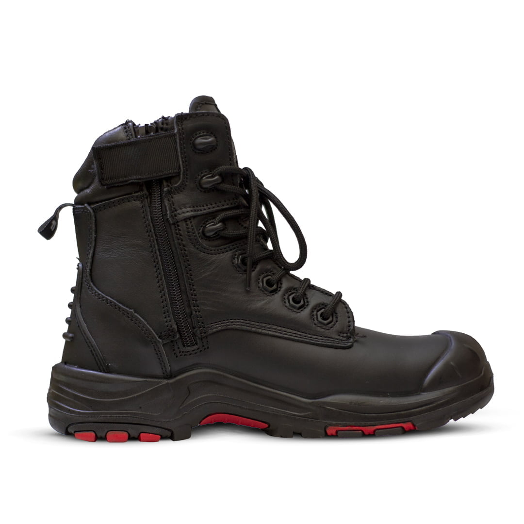 Metal-Free S3 Safety Boot: ISO 20345 S3 classification for anti-static, energy absorption, and water resistance, with SRC slip resistance. Crafted with durable full-grain New Waxy leather, heat-resistant PU/Rubber sole, and indestructible plastic eyelets. Features Cool Comfort lining with 3M Thinsulate, composite toe cap, and Flexguard Kevlar midsole. Quick-release non-metal YKK zip and toe bumper for added safety. Available in sizes 3 to 14, ideal for various industries. Upgrade your safety gear today!