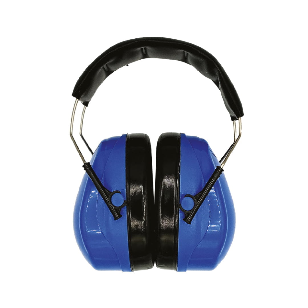 - Padded headband ear muff with adjustable cups;